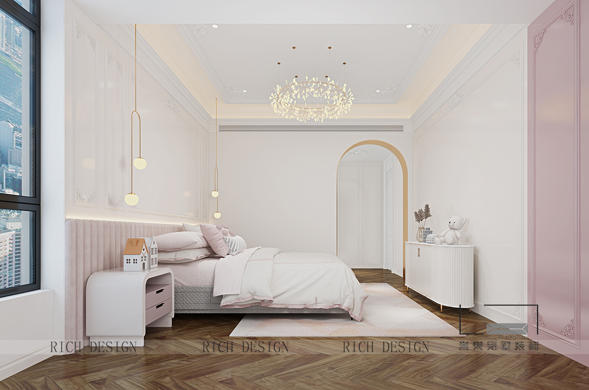 女孩房致力于打造專屬的秘密花園,通過(guò)簡(jiǎn)約少女粉、城堡弧形門與時(shí)尚結(jié)合的家具,讓人彷佛置身在南法普羅旺斯的法式城堡中,營(yíng)造出典雅唯美氣息。